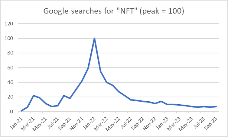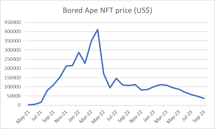 For a while there were large increases in the prices of many NFTs. But like all speculative bubbles, it was likely to end in tears. Although it’s almost impossible to predict when a bubble for a speculative asset will burst, we have seen this process play out before.