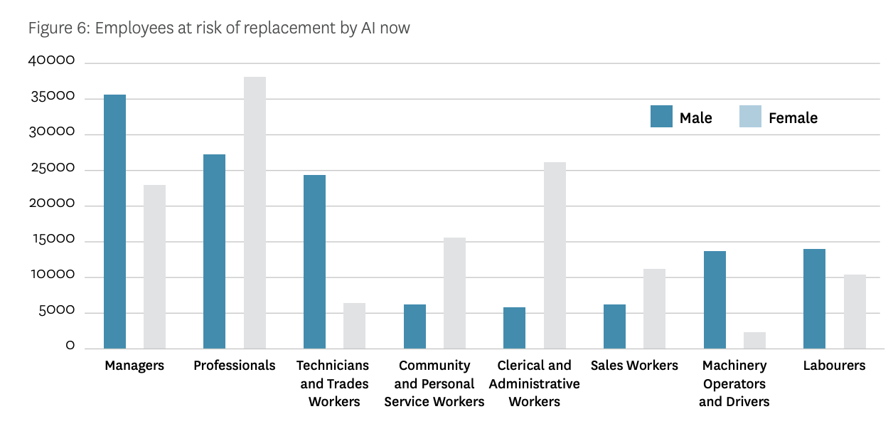 “The picture is very bleak, with potentially 40-60% of secretarial, administrative, and customer service roles exposed to and replaced by AI today,” writes the Maxim Institute’s Dr Paul Hendersen.